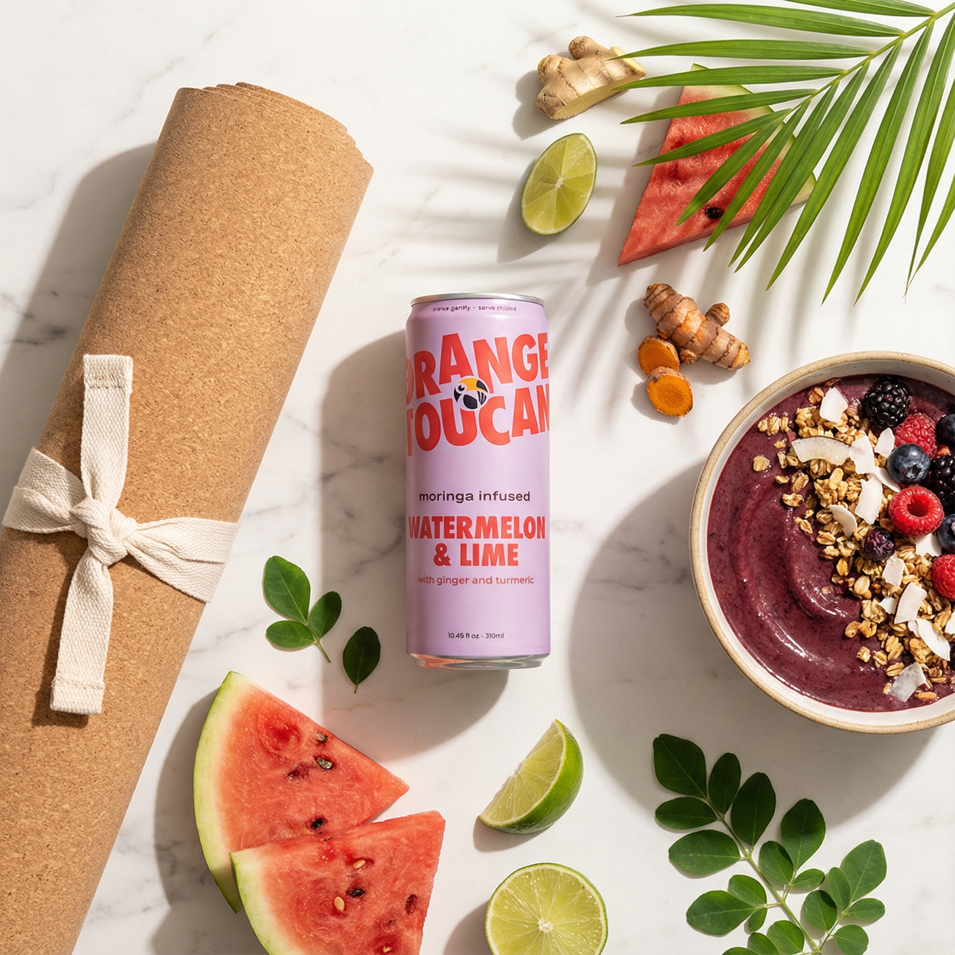 A refreshing blend of fresh-pressed watermelon and zesty lime, infused with nutrient-rich moringa. Unlike typical beverages made with juice concentrate, this healthy plant-based drink features over 50% real juice per can, delivering vibrant flavor and clean nutrition. Sourced from regenerative farming partners, every sip supports your body and the planet. Enjoy the Orange Toucan difference: a real juice beverage you can trust.